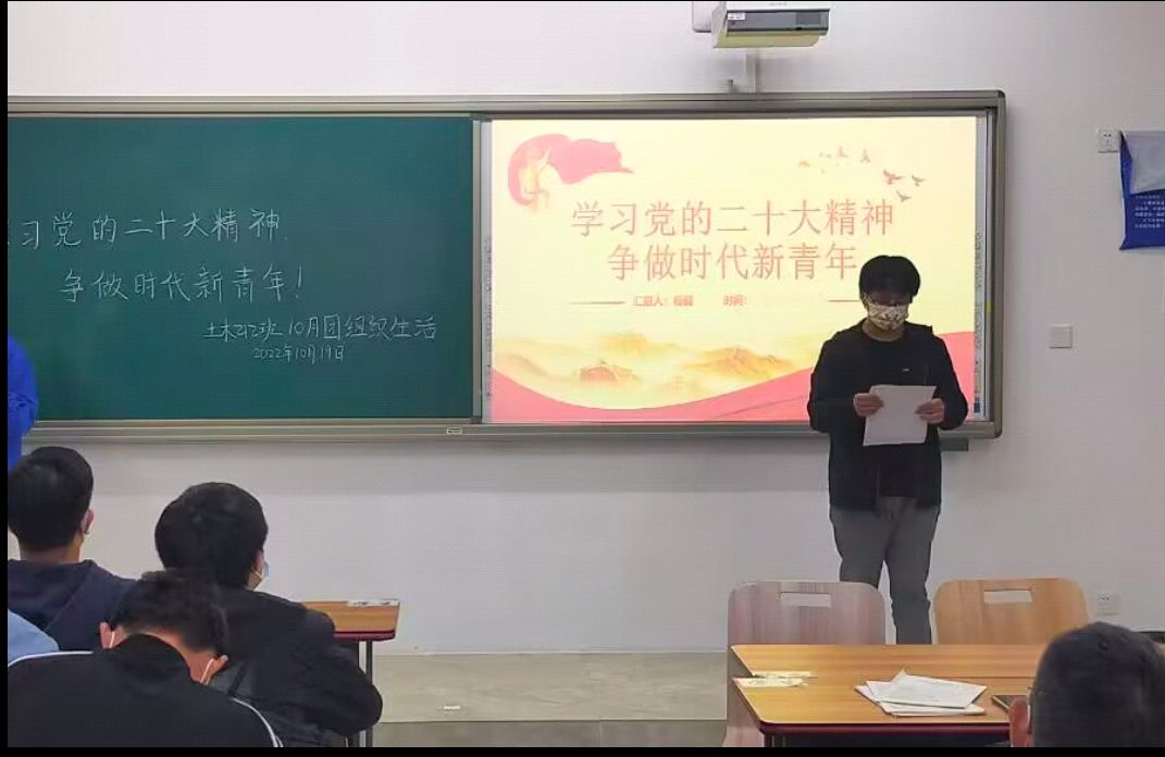(本网讯 土木工程学院 文/雷耀华 图/雷耀华)2022年10月19日,土木工程212班于G2211教室举行以“学习党的二十大精神,争做时代新青年”主题团日活动,活动由团支部书记杨健主持,土木212班全体成员参与。