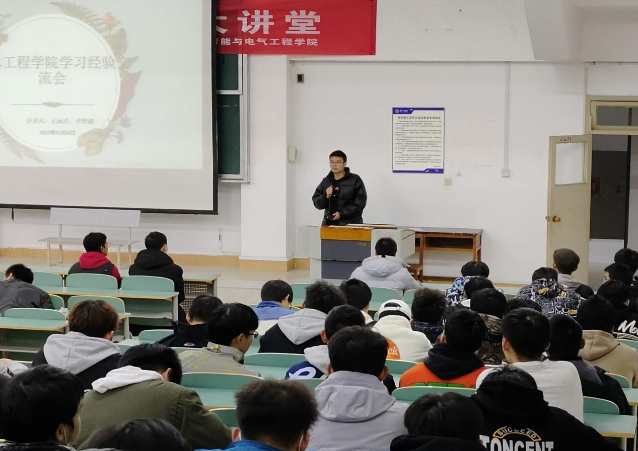 本网讯(文/蒙春龙 图/王鹤凯)12月6日晚,土木工程学院于3-415召开学习经验交流分享会,本次会议由国家奖学金获得者道桥204班王远杰、土木193班李智强主持分享,土木工程学院2022级全体同学参与。