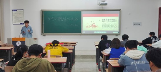 活动开始,水电211班团支书胡青带领同学们重温入团誓词,并唱响团歌,同学们声音洪亮,精神状态良好。随后,他带领同学们学习了习近平总书记对青年的殷切嘱托,希望同学们成为立大志、明大德、成大才、担大任的新时代新青年。最后,徐鹏、覃小洪及曾才朗三位同学就学校比赛经验、志愿活动等方面分享了他们的经验和感受。