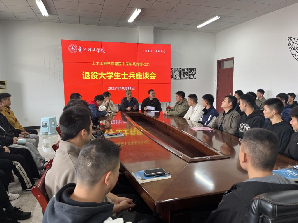 本网讯(土木工程学院 图/王东源 文/王东源)2023年10月11日中午,土木工程学院在敏行楼G3547会议室召开退役大学生士兵座谈会。土木工程学院党总支书记彭勇、党总支副书记杨文斯、辅导员吴立过、杨介男及土木工程学院全体退役大学生士兵参会。