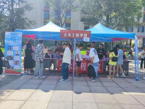 在学校的各个角落都能看到土木志愿者的身影。他们热情地接待新生,引导新生报到、帮助搬运行李、引领他们入住寝室,新生们感受到了土木大家庭的温暖。