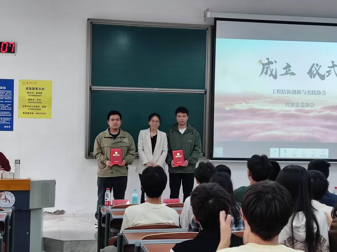 本网讯(土木工程学院 文/王思思 图/杨天红)5月6日,由土木工程学院土木教研室沈汝伟老师指导的贵州理工学院工程结构创新与实践协会和智能建造协会在开物楼G1108举办了成立大会。土木工程学院党总支副书记杨文斯,跟岗副院长张玥,学生科负责人、教师代表陈孜伟、吴立过、杨介男老师及两个社团全体成员参加。