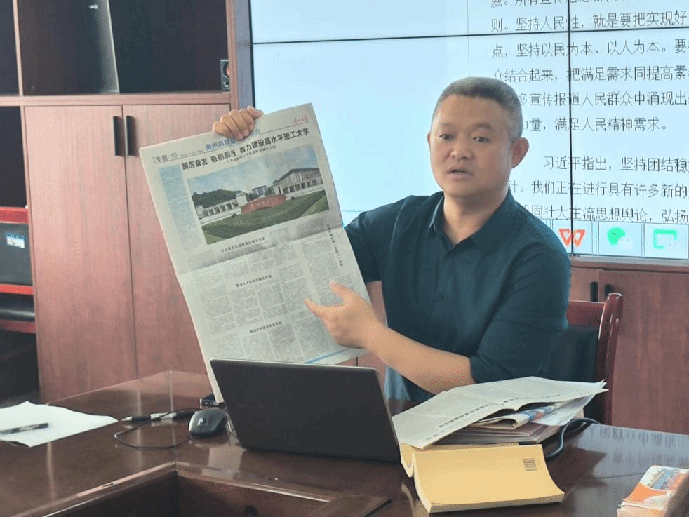 彭勇首先带领大家认真学习《习近平著作选读》中的《宣传思想工作的使命任务》《把宣传思想工作做得更好》《坚持党的新闻舆论工作的正确政治方向》等文章,要求同学们要从“道”的层面深刻认识“举旗帜、聚民心、育新人、兴文化、展形象”的使命任务,让宣传思想工作始终做到围绕中心、服务大局。