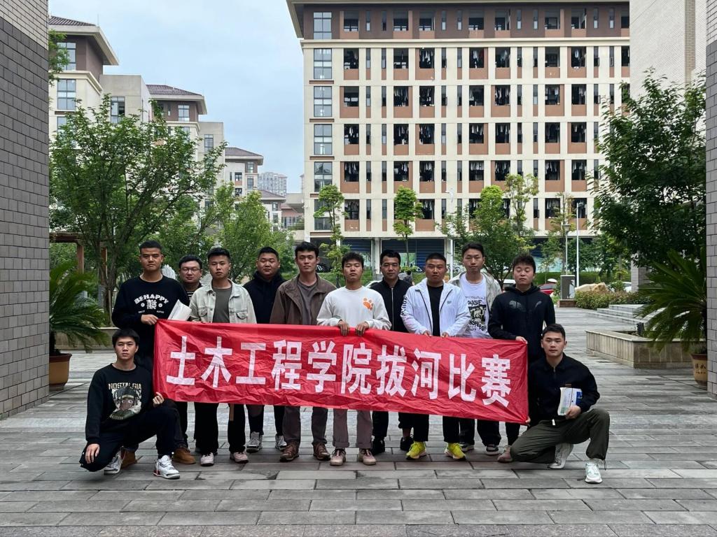本网讯(土木工程学院 图/潘柳玉 文/龙海东)为弘扬“严谨求实、团结奋进”的院风,增进各班级之间的交流,加强班级内在凝聚力,增强学生体质。2024年5月13日、5月14日晚,土木工程学院于敏行楼下广场举行了土木工程学院拔河比赛。土木工程学院党总支书记彭勇、副书记杨文斯,辅导员及班主任到现场加油,2021级、2022级、2023级所有班级及毕业班道桥223班参加。