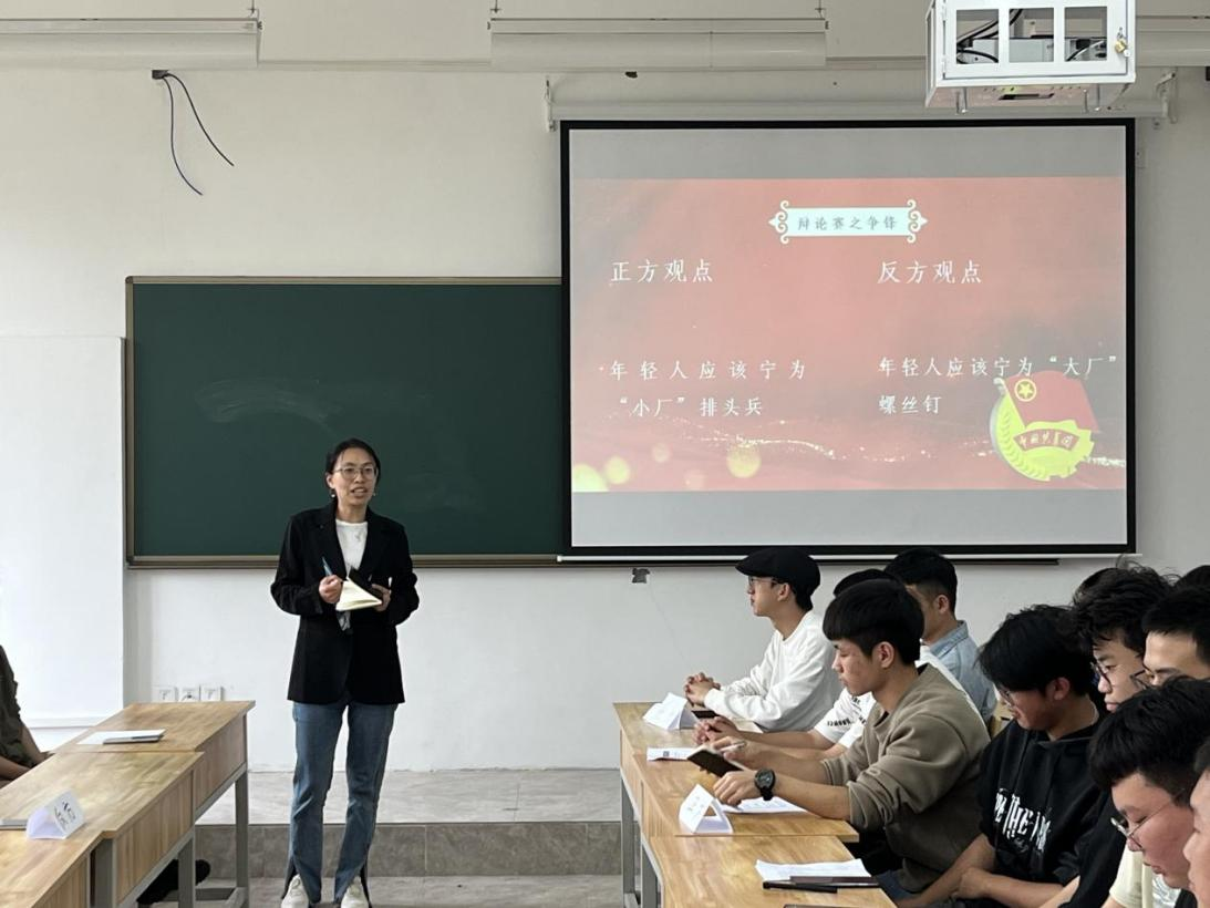 5月17日,在敏行楼G3547学习了五四青年节背景来历、习近平总书记对青年青春的嘱咐等内容。为进一步激发团员及同学们的爱国热情和青春担当责任感,更加深刻地认识到青春当奋斗担当的使命,开展了以“大厂螺丝钉”“小厂排头兵”为辩题的辩论赛,正反双方对“做大厂螺丝钉”“做小厂排头兵”展开辩论。