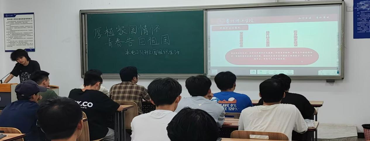 本网讯(土木工程学院 图文/沈开雨)9月11日晚,水电231班在G1203教室成功开展了以“厚植家国情怀,青春告白祖国”为主题的团组织生活活动。本次团组织生活由团支书孔睿铖主持,水电231班全体同学参与。