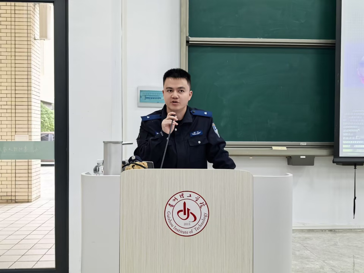 赵宇警官指出防范诈骗至关重要,诈骗不仅会导致个人财产损失,还可能给受害者带来巨大的心理创伤。他通过分析花溪大学城发生的诈骗案例,指出保护个人信息的重要性,提醒同学们提高警惕,诈骗就发生在身边,告诫同学们不参与诈骗,谨防上当受骗;赵宇警官通过现场互动的方式,讲解了常见的诈骗类型,引导同学们学习防范电信网络诈骗的方法。讲座现场气氛活跃。