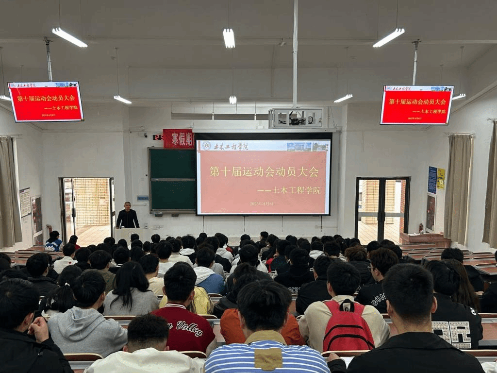 本网讯(土木工程学院 图/曹淇木 文/陈志 王鹤凯)2025年4月8日中午,土木工程学院在开物楼G1109教室举行第十届校运会动员大会。学院党总支书记彭勇、副书记杨文斯,学生科副科长秦丽丽、2021级辅导员刘兵,团总支学生会骨干、各班级骨干及方阵代表参会。