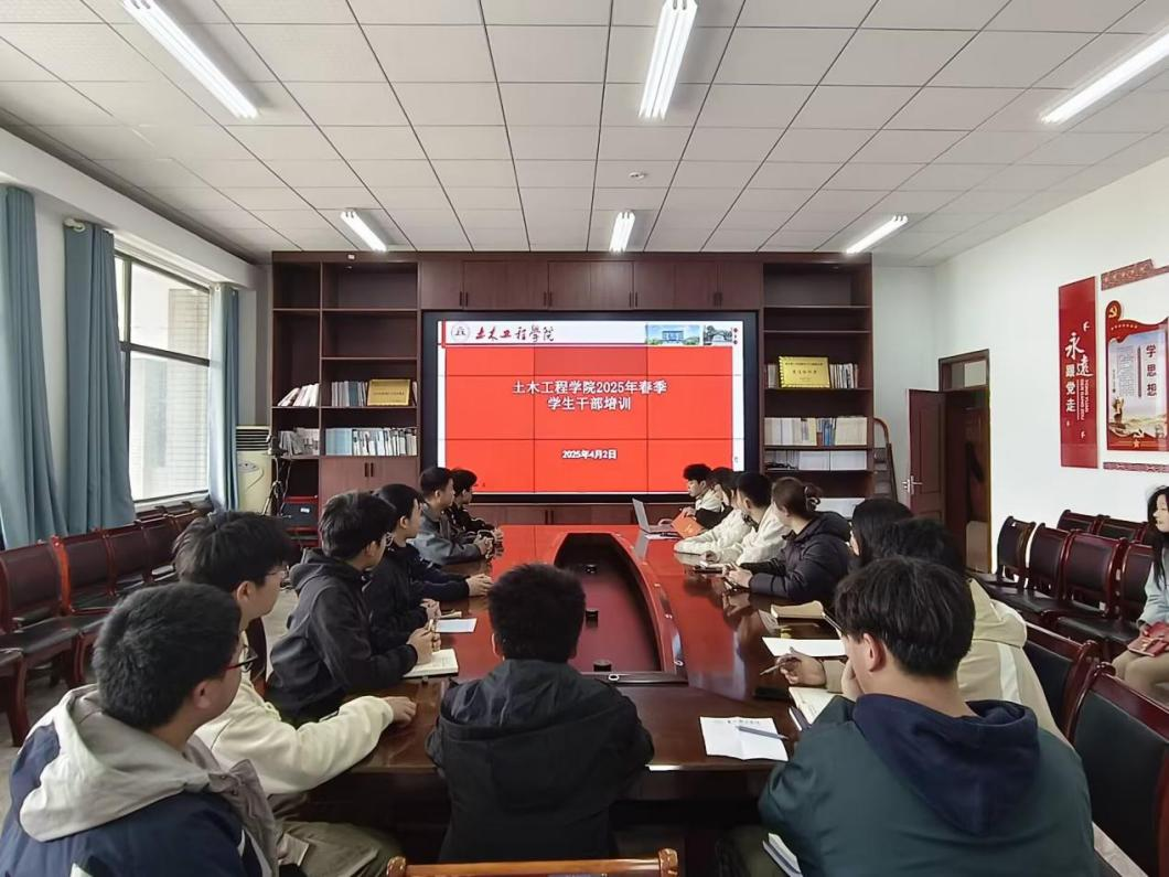本网讯(土木工程学院 图/土木工程学院 文/周椿云)为进一步加强学生干部队伍建设,提升学生干部的综合素质和工作能力。2025年4月2日,土木工程学院在敏行楼G3547开展春季学期学生干部培训。本次培训由学院学生会主席李晓文主讲,全体学生会干部参加。