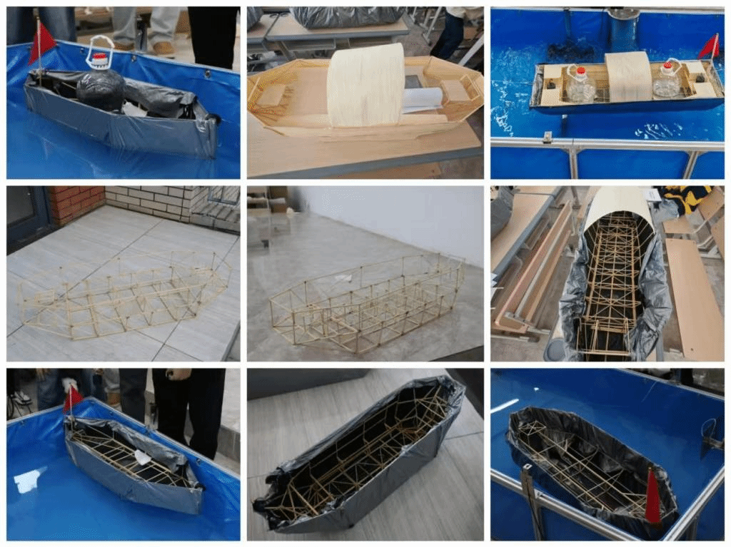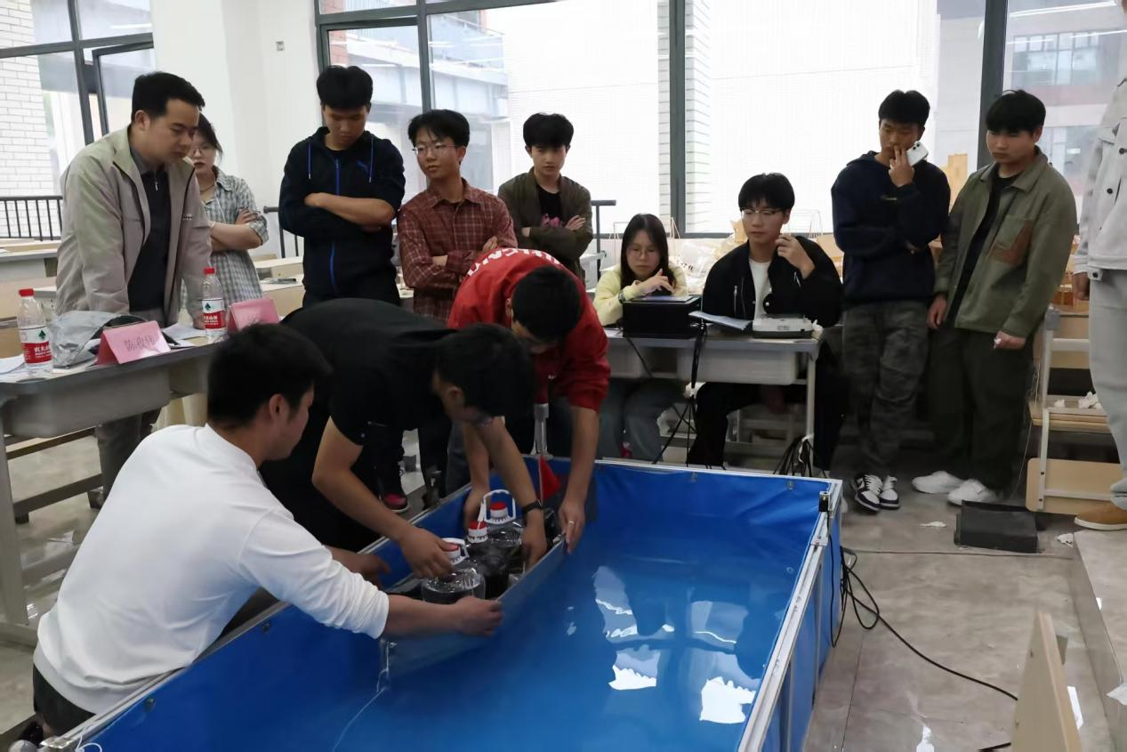 在答辩环节,各参赛队伍通过系统阐述乌篷船外形结构的设计理念、力学特性及创新点,全面展示了理论知识与实践应用的结合能力;在模型加载测试中,选手们通过渐进式负重实验科学验证了船体结构的稳固性,充分体现了工程实践的严谨性。评委老师从结构创新性、模型制作工艺、答辩表现及加载测试结果等多维度进行综合评分。