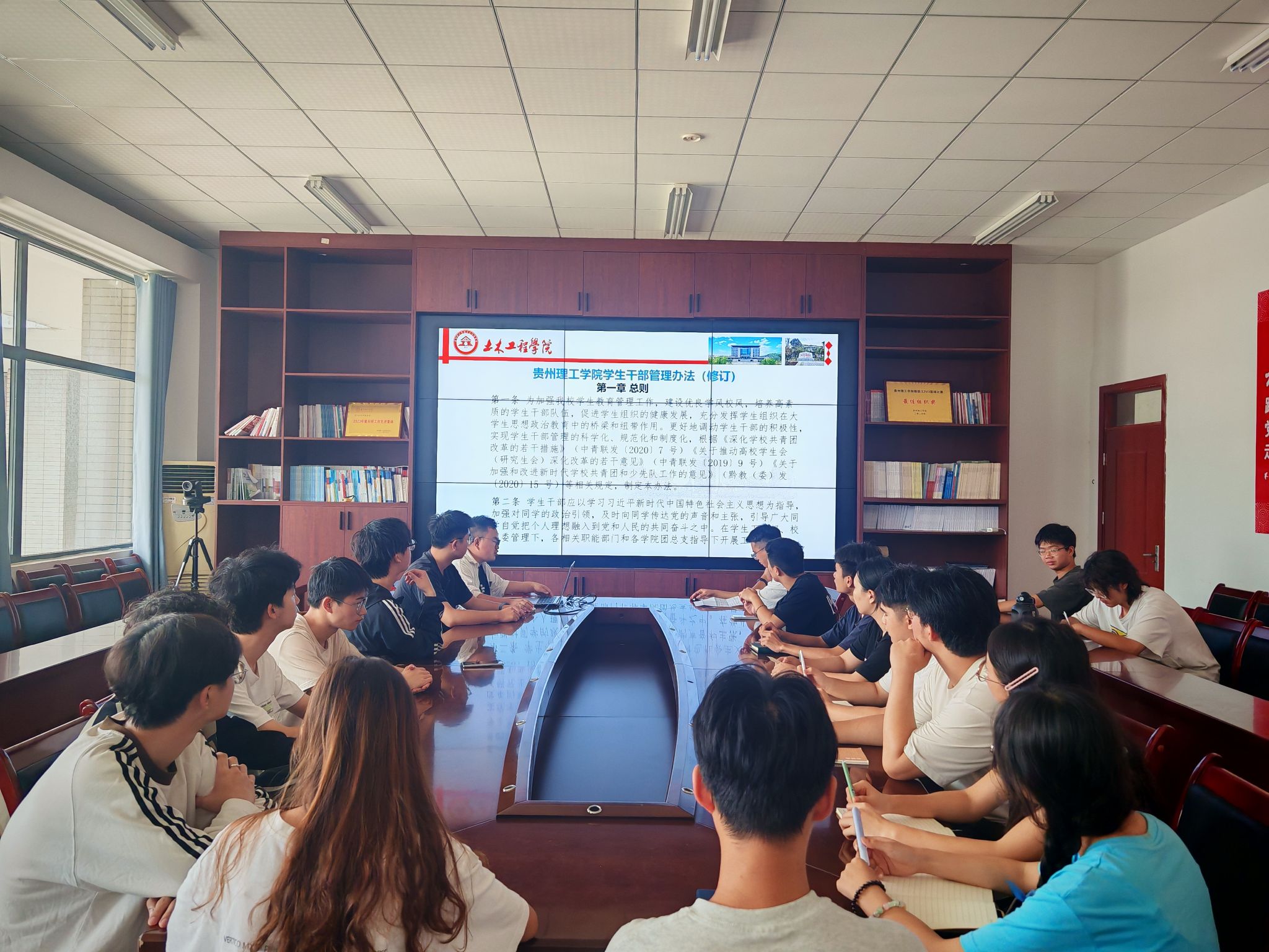 培训会上,杨颜挺领学了《加强和改进新时代学联学生会工作实施方案》《学生会研究生会干部自律公约》及《贵州理工学院学生干部管理办法(修订)》等文件。深入剖析学生干部的职责边界与成长路径,强调“学生干部应以服务为本、以学风为纲”。杨颜挺还结合实际案例,详细讲解了如何高效组织活动、怎样提升团队凝聚力等具体工作方法。他鼓励全体学生干部要勇于担当、积极作为,充分发挥桥梁和纽带作用,为学院的发展和同学们的成长贡献自己的力量。同时,他也提醒大家要合理安排时间,做到工作学习两不误。