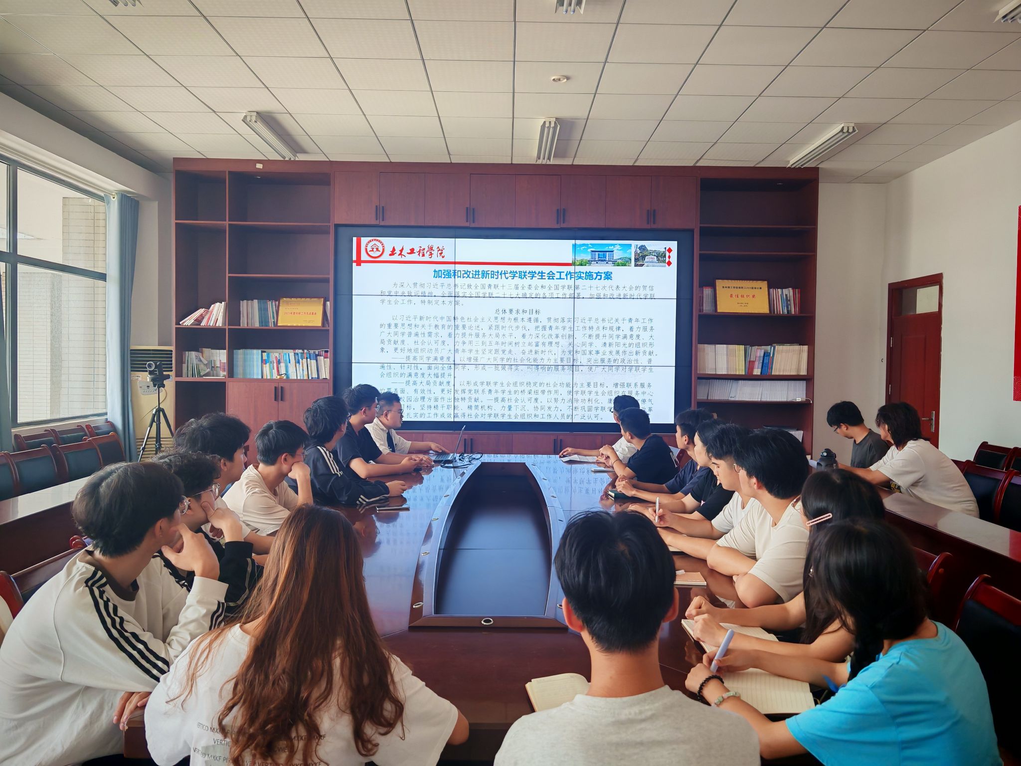 团总支学生会各部门负责人汇报本部门相关工作开展情况、工作总结与规划。