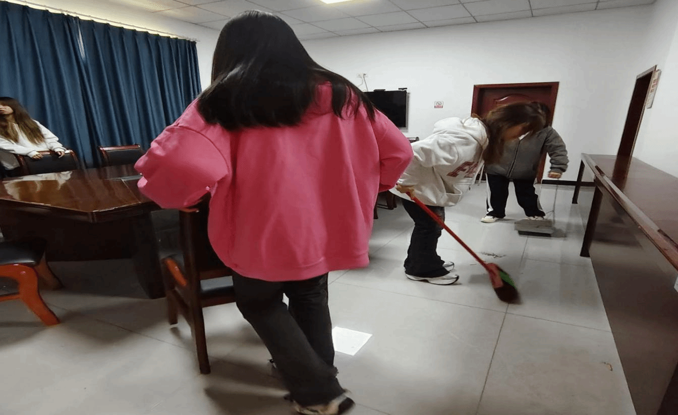 大家手持扫帚、拖把、抹布等工具,从一楼至顶楼逐层开展清扫工作。认真清除地面的灰尘与杂物,仔细擦拭楼梯扶手和墙面上的污渍,不放过任何一处卫生死角。