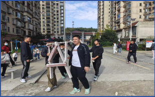 第一小组聚焦“环境保护”主题,手持清洁工具,对社区公共区域展开了细致的环境整治。志愿者们重点清理了绿化带中的白色垃圾、烟头纸屑,清扫了主干道及休闲广场的落叶与杂物,并对部分卫生死角进行了彻底清扫。在劳动中,同学们不仅发扬了不怕脏、不怕累的作风,更将工程管理中的规划意识应用于实践,高效分工协作,使社区环境在短时间内焕然一新。他们的辛勤劳动赢得了过往居民的交口称赞,一位社区居民表示:“这些大学生娃娃真不错,干活认真,把我们小区打扫得这么干净,谢谢他们!”