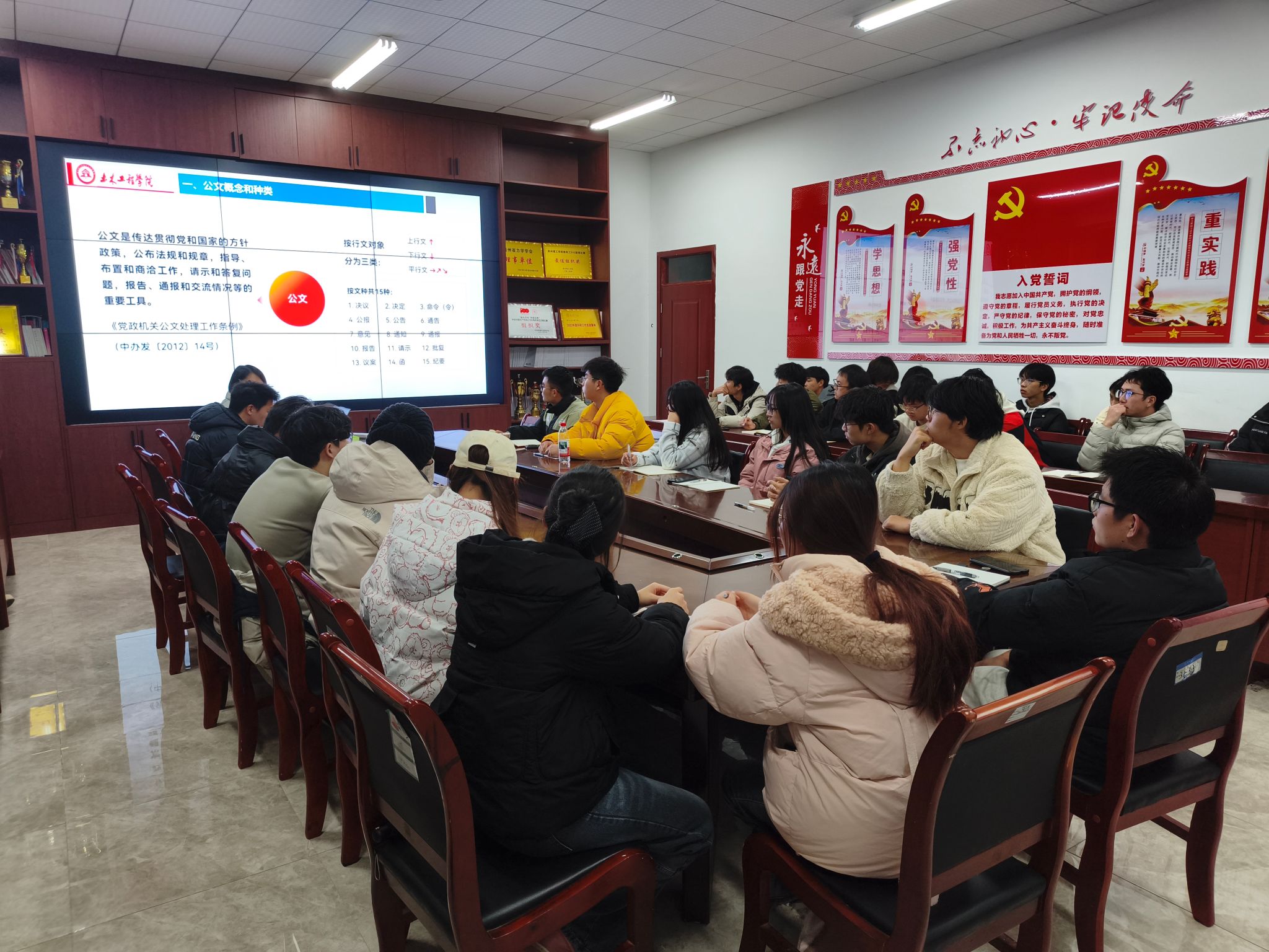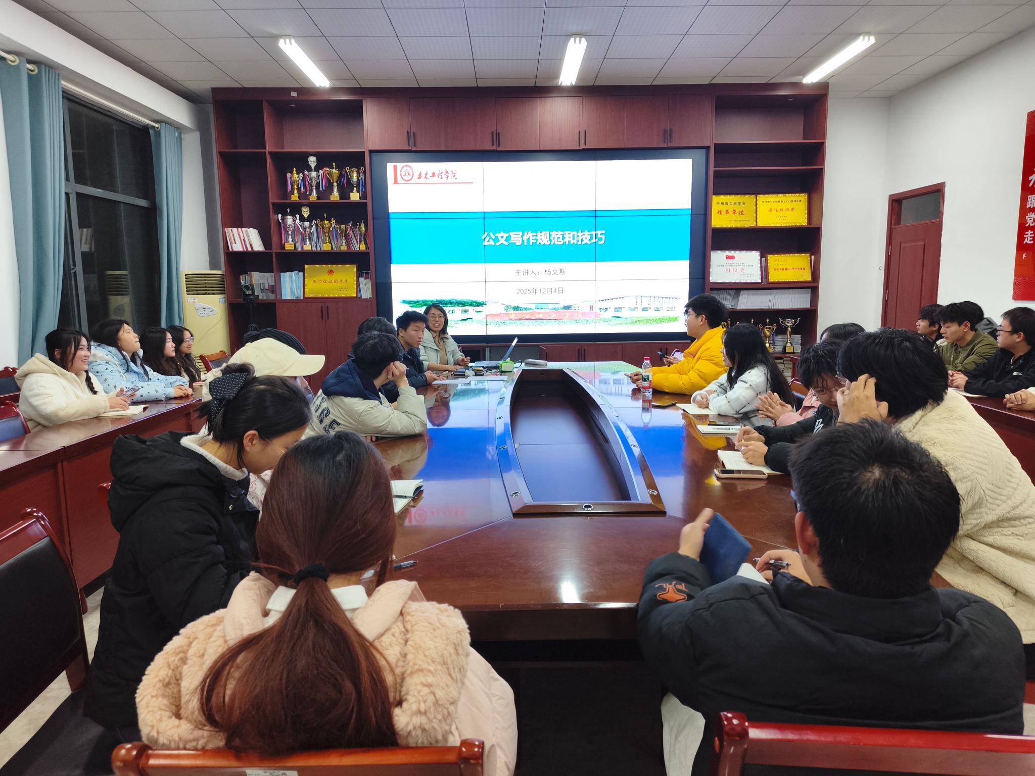 本网讯(土木工程学院 图/“智见”媒体中心 文/黄诗晴)12月4日晚,土木工程学院在敏行楼3547会议室举办学生公文写作规范和技巧专题培训。学院团总支(学生)副书记、学生会主席、各部门负责人和各班班长参加培训。