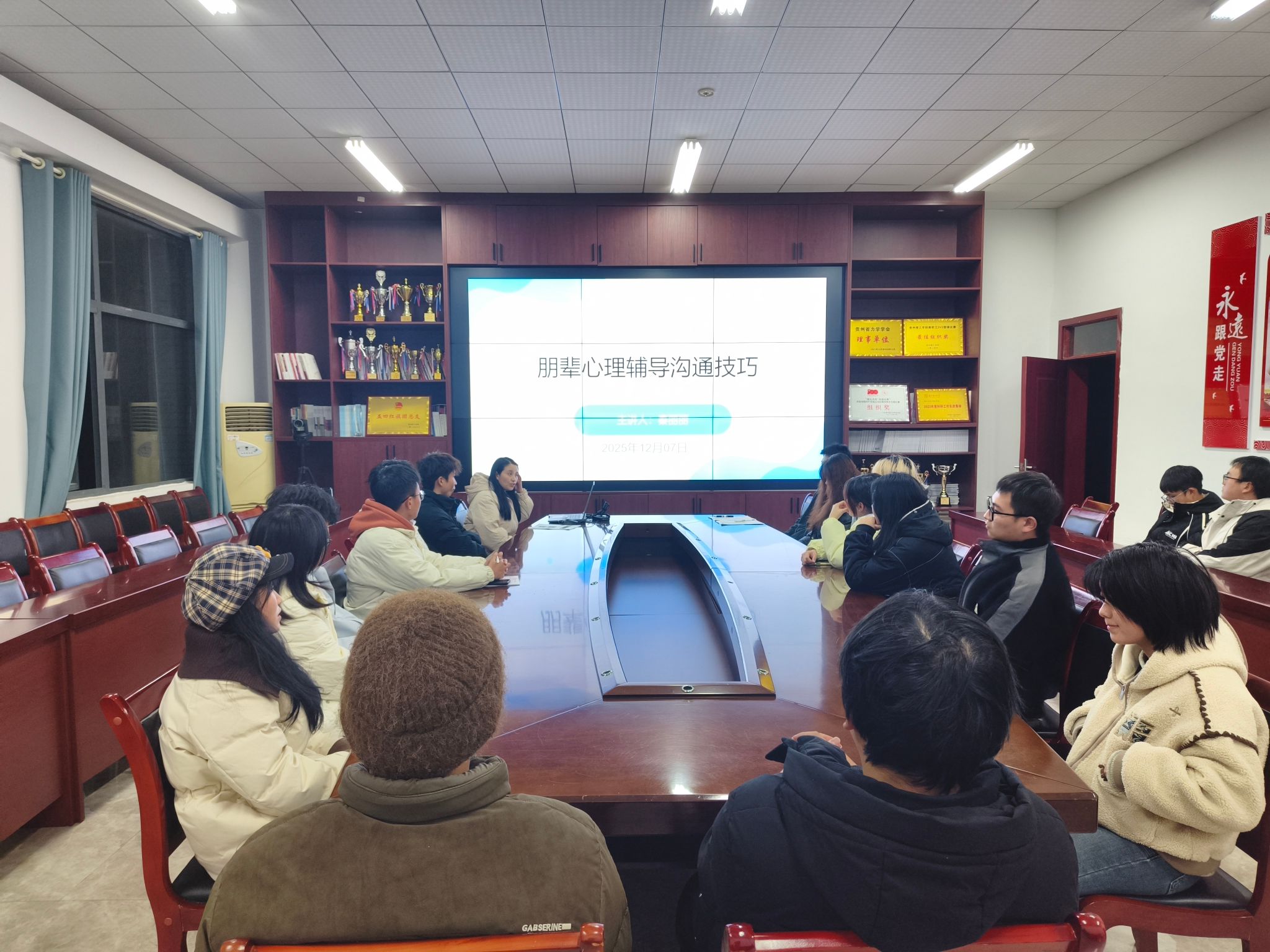 本网讯(土木工程学院 图/田博 黄诗晴 文/罗成航)12月7日晚,我院在敏行楼3547会议室举办“朋辈心理辅导沟通技巧”专题培训。本次培训由学院学生科副科长秦丽丽主讲,参训人员覆盖各班心理委员。
