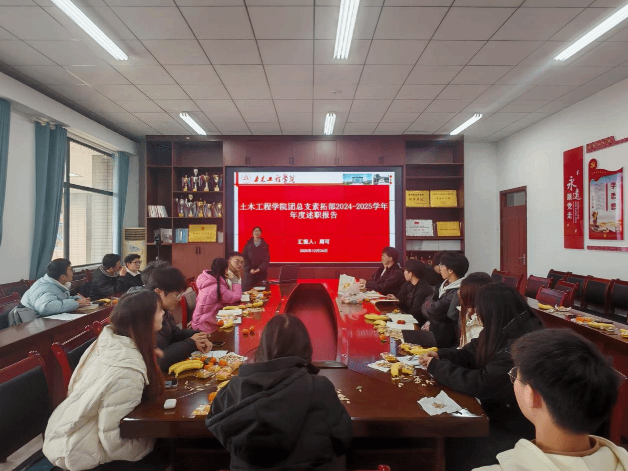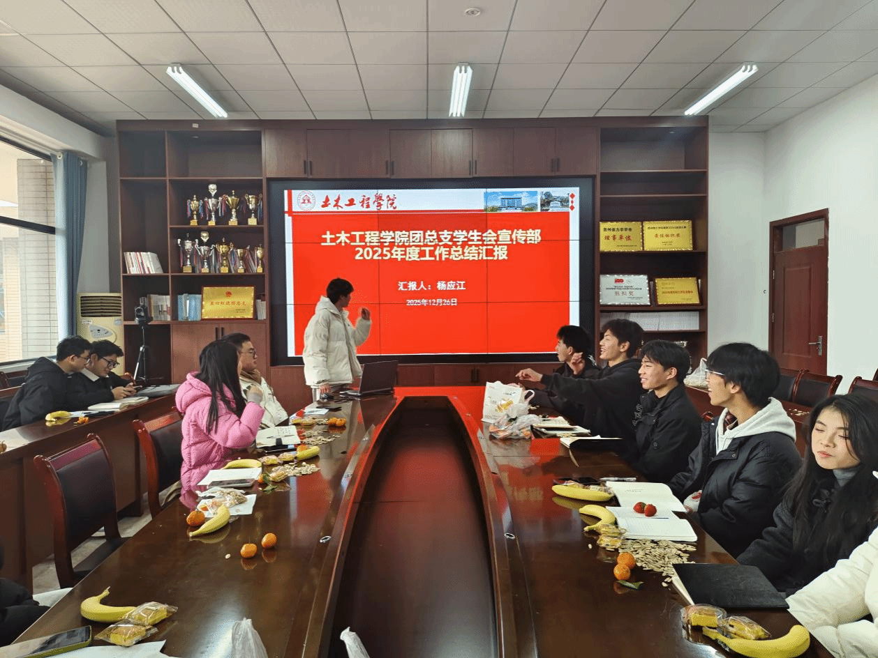 本网讯(土木工程学院 图/“智见”媒体中心 文/周椿云)12月26日下午,我院在敏行楼3547会议室召开2025年度团总支学生会及社团述职大会。土木工程学院学生科副科长秦丽丽、2024级辅导员熊雪梅,团总支学生会主席团、学生副书记、各部门负责人及各社团社长参参加。