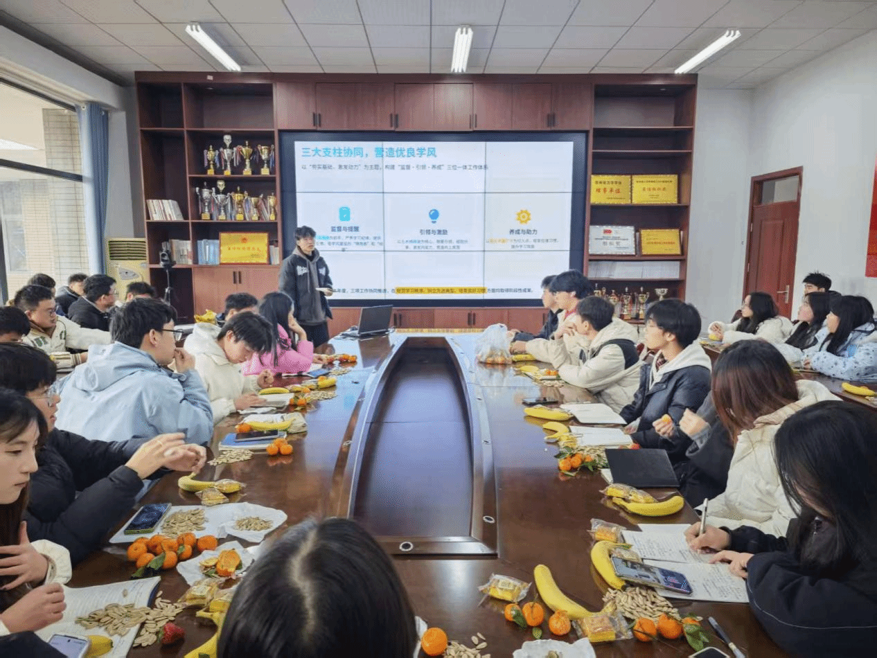 会上,团总支学生会办公室、宣传部、组织部、素拓部、科创部、学风部、文体部、生活部等部门负责人,分别围绕本部门年度工作成果、存在的问题与不足、改进措施及未来工作规划等内容进行述职。各部门分管主席、学生副书记对所管部门的汇报进行补充发言。致远读书协会、学院专业社团负责人,则围绕本学期社团发展与日常管理等方面进行述职。秦丽丽对各部门年度工作进行指导点评,在给予鼓励肯定的同时,梳理分管工作亮点与共性问题,明确后续统筹优化重点,凝聚工作合力。