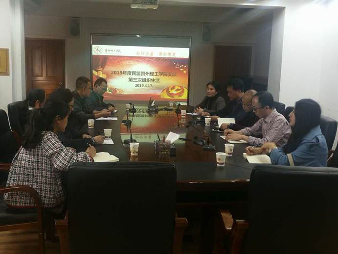 4月17日下午,民盟贵州理工学院支部在行政楼五楼会议室召开2019年第三次组织生活会。校党委统战部周欢老师列席,会议由民盟贵州理工学院支部主委刘琦主持。