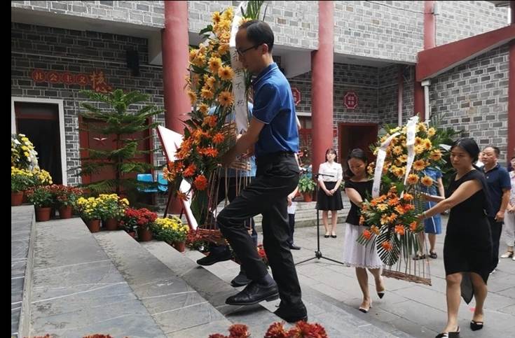 活动开始,全体人员在周逸群烈士塑像前向烈士鞠躬致敬并敬献花篮。