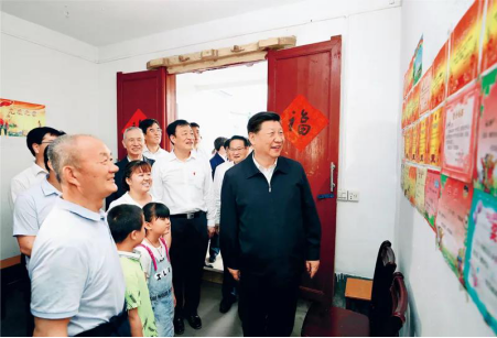 2019年9月16日至18日,中共中央总书记、国家主席、中央军委主席习近平在河南考察。这是16日下午,习近平在信阳市新县田铺乡田铺大塆“老家寒舍”民宿店,同店主一家亲切交谈。 新华社记者 谢环驰/摄