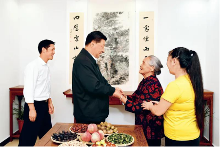 2019年5月20日至22日,中共中央总书记、国家主席、中央军委主席习近平在江西考察,主持召开推动中部地区崛起工作座谈会并发表重要讲话。这是习近平来到红军烈士后代、退伍军人孙观发家看望慰问。 新华社记者 鞠鹏/摄