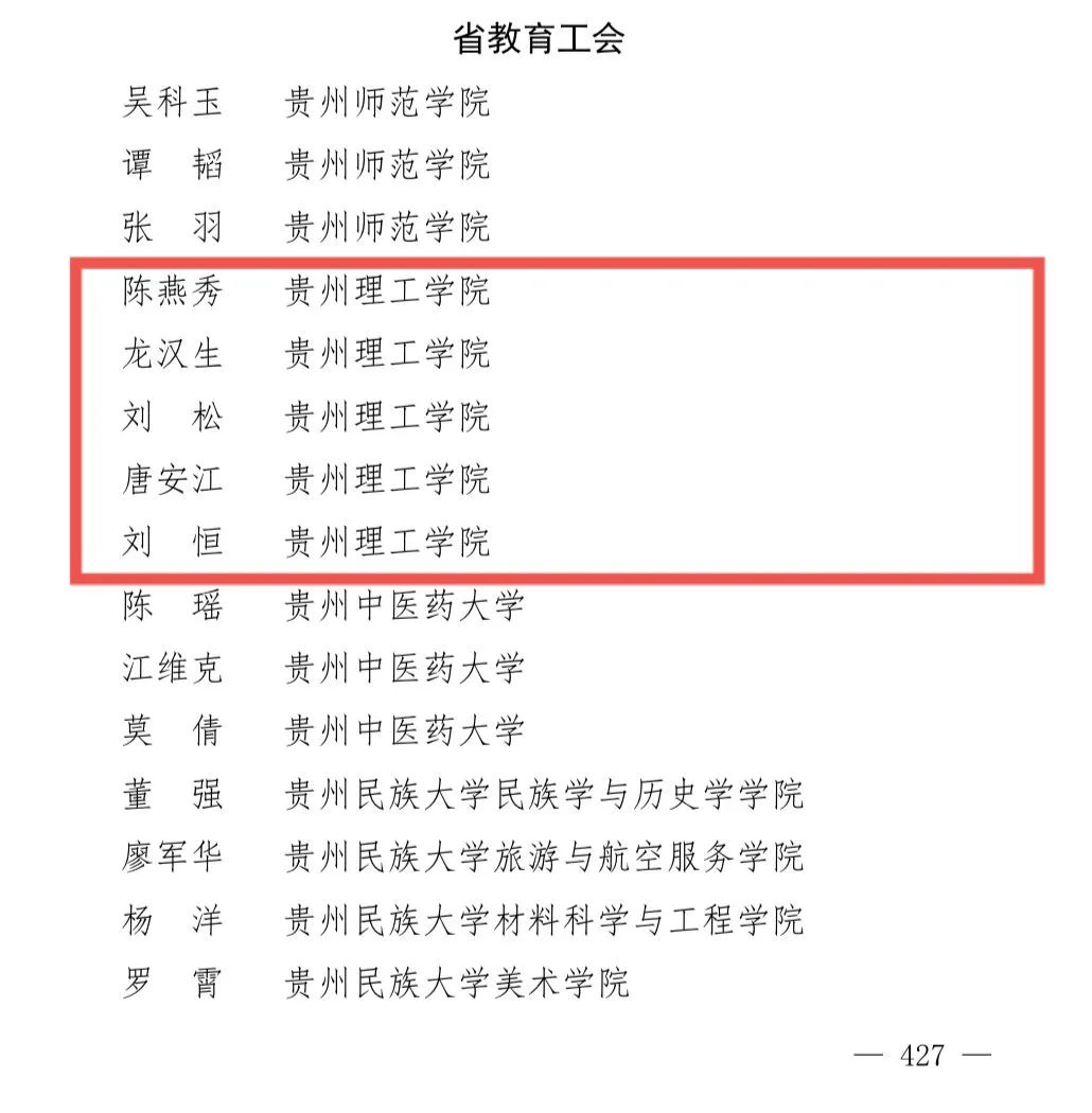 以“中国梦·劳动美——永远跟党走 奋斗新征程”为主题的2021年贵州省“最美劳动者”发布,此次“最美劳动者”,包括工人、农民、基层党员干部、乡村教师、医护人员、公安干警、科研工作者等,我校陈燕秀、龙汉生、刘松、唐安江、刘恒5名教师名列其中。