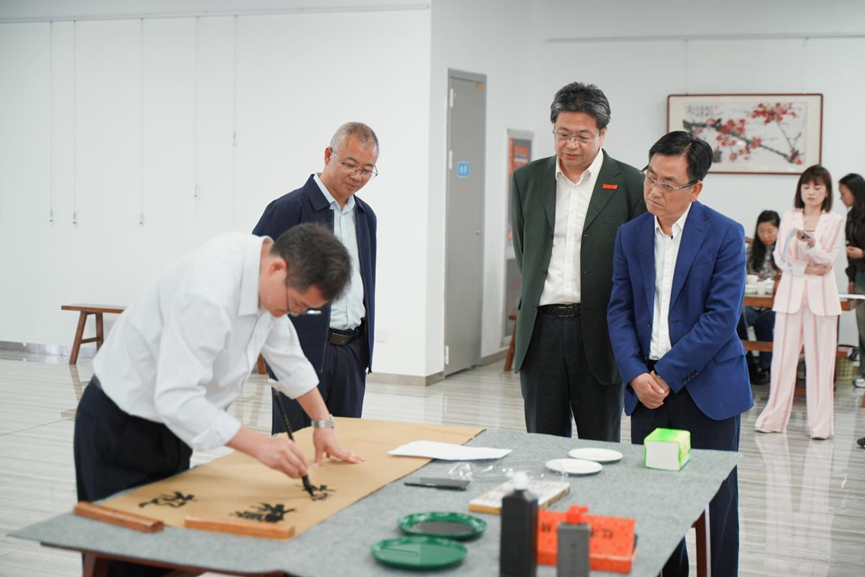 活动开幕前,各领导与嘉宾参观了图书展陈及语言成果展示,观看了我省书法、美术名师的现场创作。