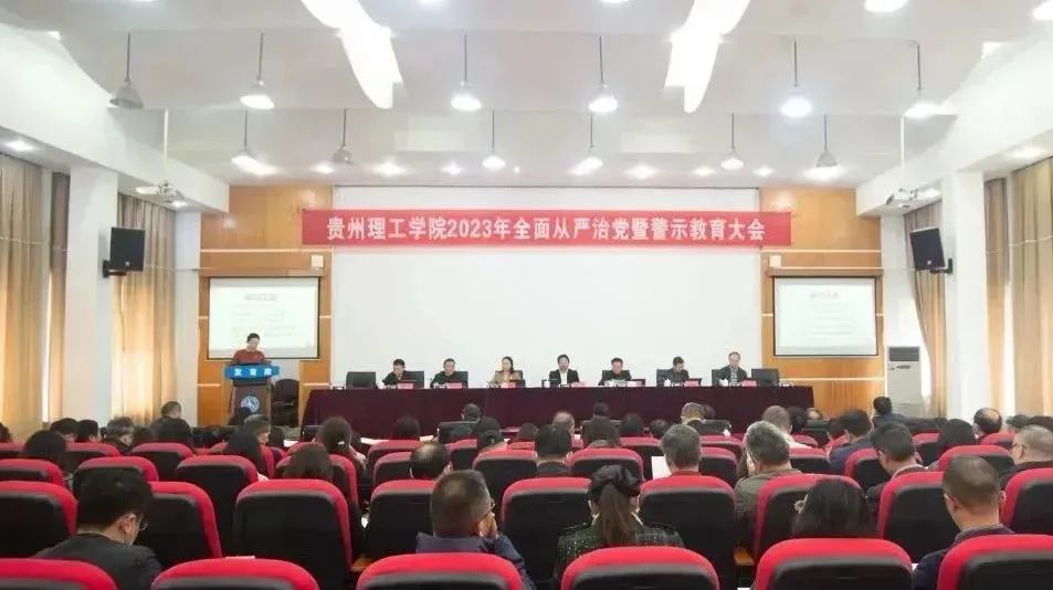 3月23日上午,贵州理工学院召开2023年全面从严治党暨警示教育大会。大会主要任务是:坚持以习近平新时代中国特色社会主义思想为指导,深入贯彻落实党的二十大关于全面从严治党战略部署,贯彻落实二十届中央纪委二次全会精神、十三届贵州省纪委二次全会精神,总结2022年工作,对2023年全面从严治党工作进行安排部署,科学分析全面从严治党新形势,面向新征程、部署新任务、开创新局面,坚定不移推动全面从严治党向纵深发展。校领导苏向东、胡兴灿、贺梦依、林长松、张开智,党委委员左柏州、李朋出席会议。