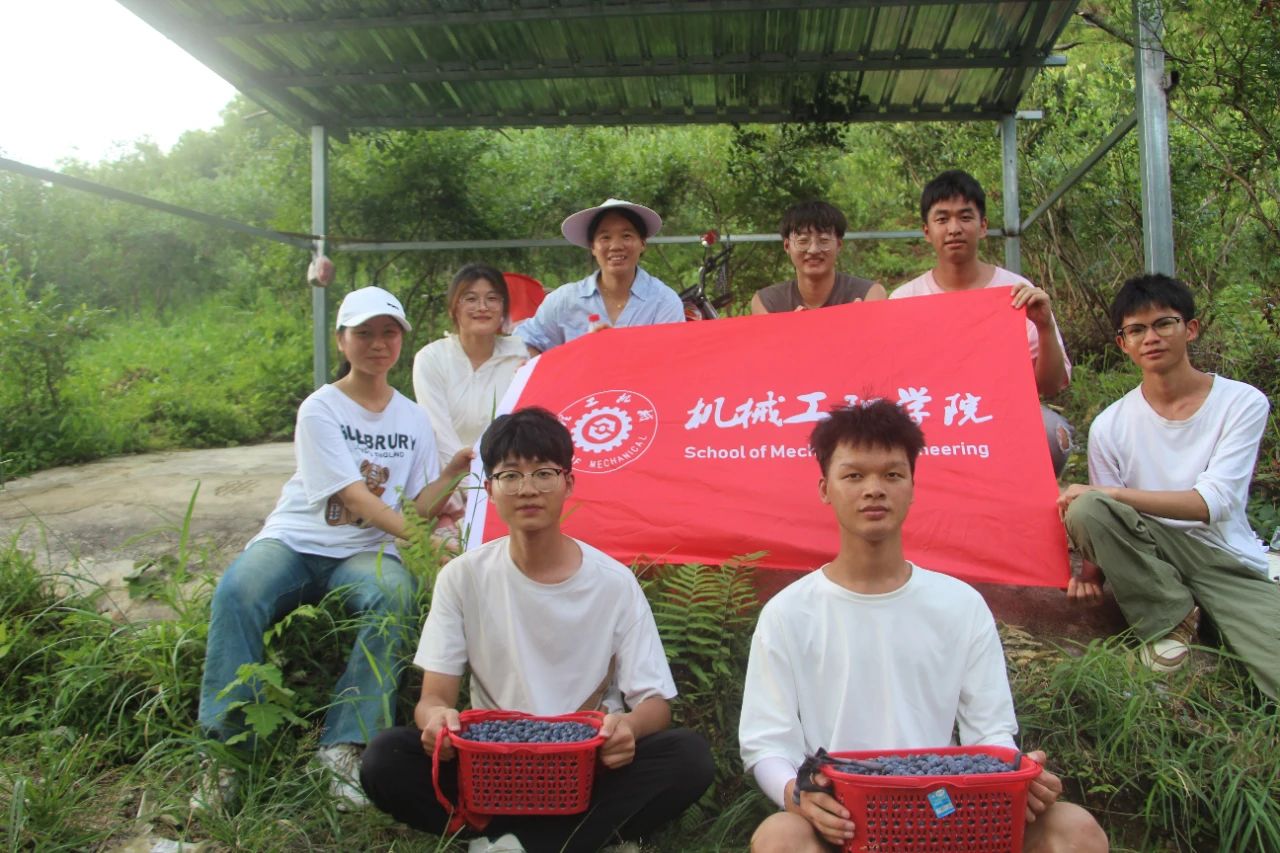 通过听取介绍、种植园参观走访、蓝莓采摘体验等,实践队员详细了解了当地蓝莓种植规模、蓝莓种植生态环境、精深加工等相关内容,并就蓝莓种植采摘过程中遇到的人工采摘成本较高、山顶运果困难等问题进行了交流探讨,结合自身所学学科,构思了当地蓝莓种植“痛点”问题的初步方案。