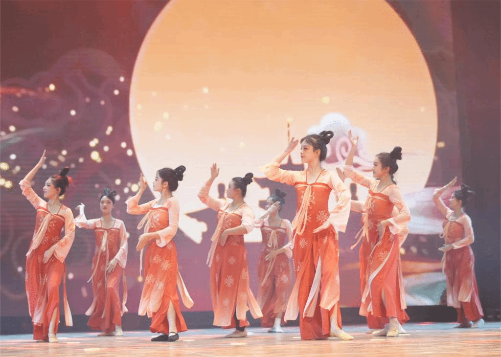 来自贵州民族大学艺术团的舞者们儒雅大气的舞蹈将少女奇遇娓娓道来,她们默契配合灵动活泼,舞姿优美舒畅、贤婉柔靡。