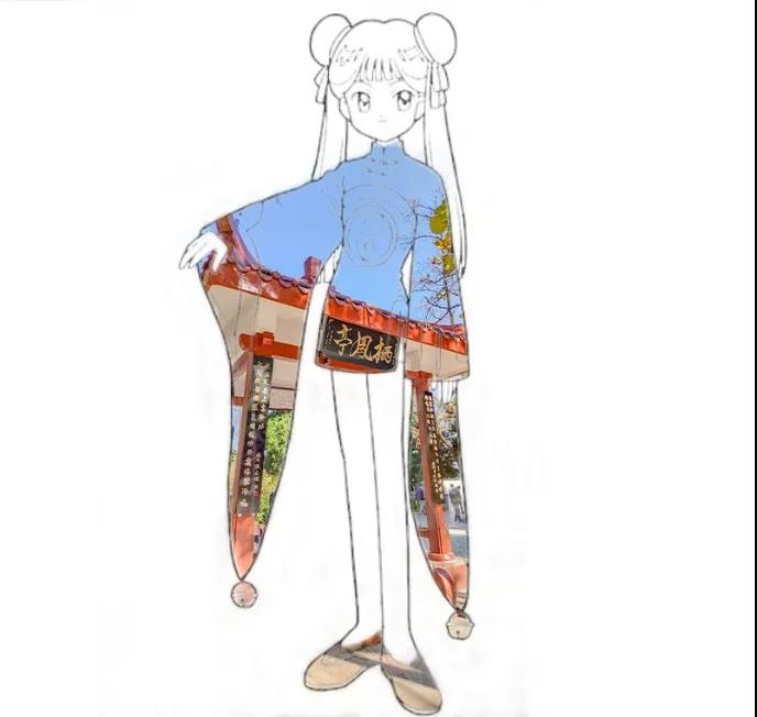赠字碑文,拥枝环绕,神圣和庄严之美感,美丽的蓝色服装让人为之尊重,运动鞋和帽子的搭配又不失青春活跃的气息。