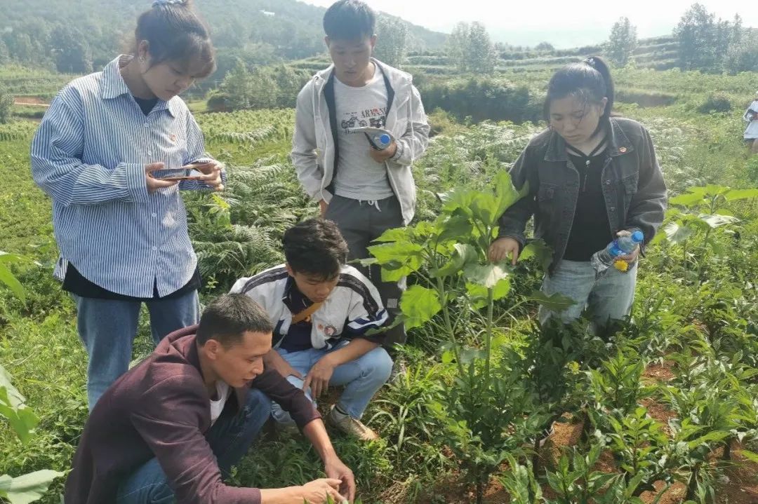 启戛村村支书马关鹏带领黔青英才队成员去魔芋基地参观,并了解到芸豆与魔芋的套种。为了芸豆的产能高,要在芸豆长到三四十厘米的时候搭一个支架,让芸豆在支架上面成长,这样一来,芸豆就可以为魔芋遮阴。充分利用土地光、热、气、空间和时间的综合措施,可以提高单位面积土地的总产量。
