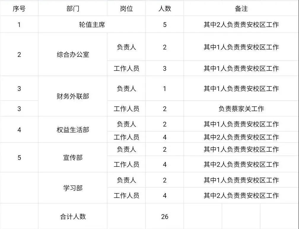 备注:学生会轮值主席由学代会选举产生,不参与本次选聘。