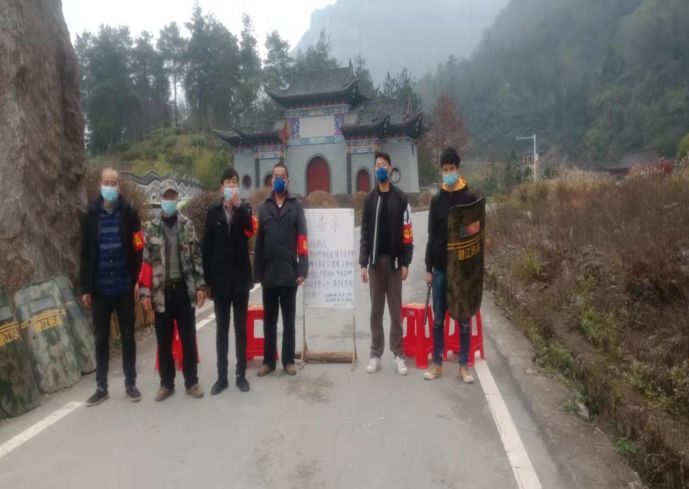 (刘建明同学在村口排查外来人员:自右往左第二位)