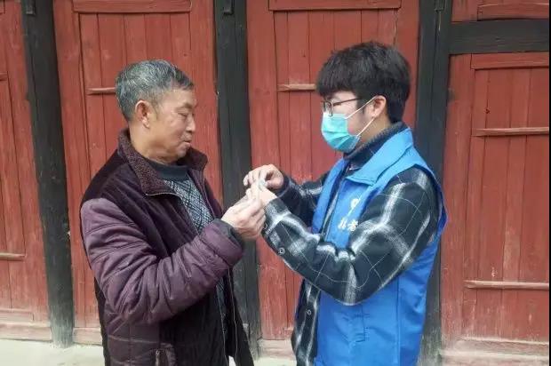 疫情暴发后,周杨同学加入贵州省岔河镇足纳村志愿队伍中,协助村干部一起走村入户宣传防疫知识,让村民知疫情,懂防疫,从而最大限度降低传染隐患。