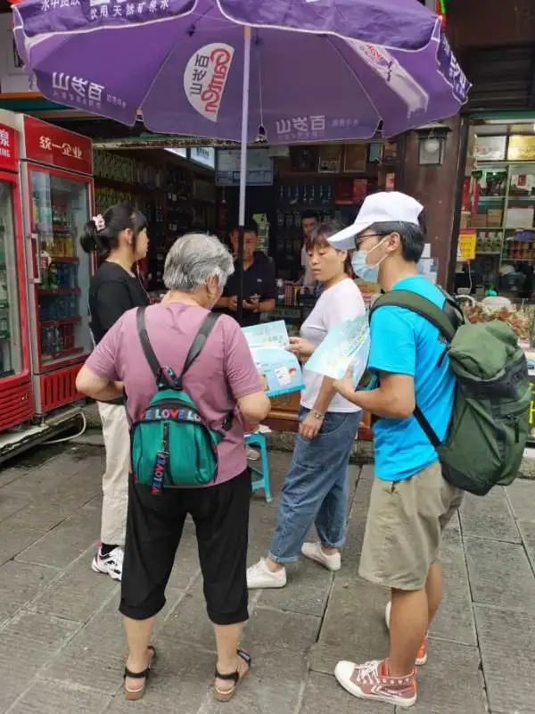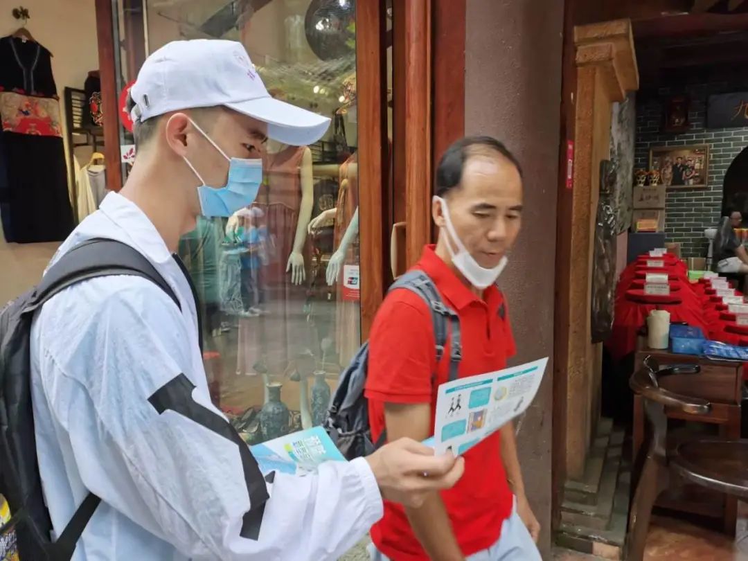 参观活动结束后,社会实践队队员们在红军街向来往的游客和周边居民分发抗击新冠肺炎疫情的宣传页,积极主动进行抗疫知识宣传。
