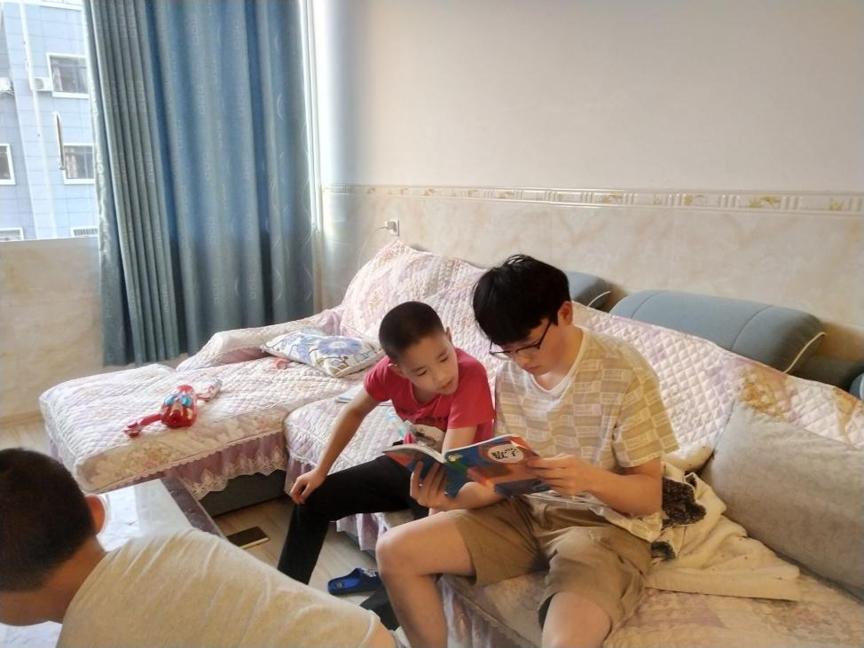 王帅在为孩子讲解阅读技巧和阅读方法。从他的讲解中,孩子提高了对阅读的兴趣,也学习到阅读的方法,明白了要抓住文章的主题和中心思想,才能更好的理解作者的意思。