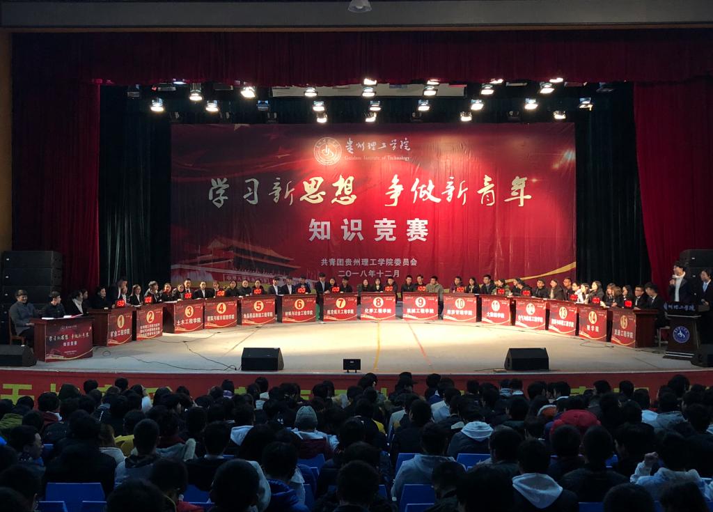 本次活动以学习党的十九大精神、习近平总书记“7·2”重要讲话精神、团的十八大精神、《走进新时代——十九大精神学生读本》为内容,比赛分为初赛和决赛。初赛由广大青年学生在易班答题,共有近5000名同学参与其中,决赛由初赛取得优异成绩的同学组成的学院代表队和贵州理工学院习近平新时代中国特色社会主义思想青年讲习所共15个代表队同场竞技。校团委书记李朋、学工部副部长彭勇、全校团干部及1000名同学观看了比赛。