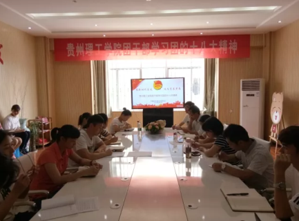 2018年7月3日中午,传达学习团的十八大精神座谈会在学工楼二楼会议室举行,校团委全体老师、各学院团总支负责人、学生干部等40余人参加会议。