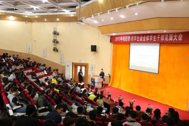 2017年10月27日,校团委、校学生会学习贯彻党的十九大精神暨全体学生干部见面大会在逸夫小报告厅举行,校团委全体老师、校级学生组织全体成员参加会议。会议由纪传文同学主持。
