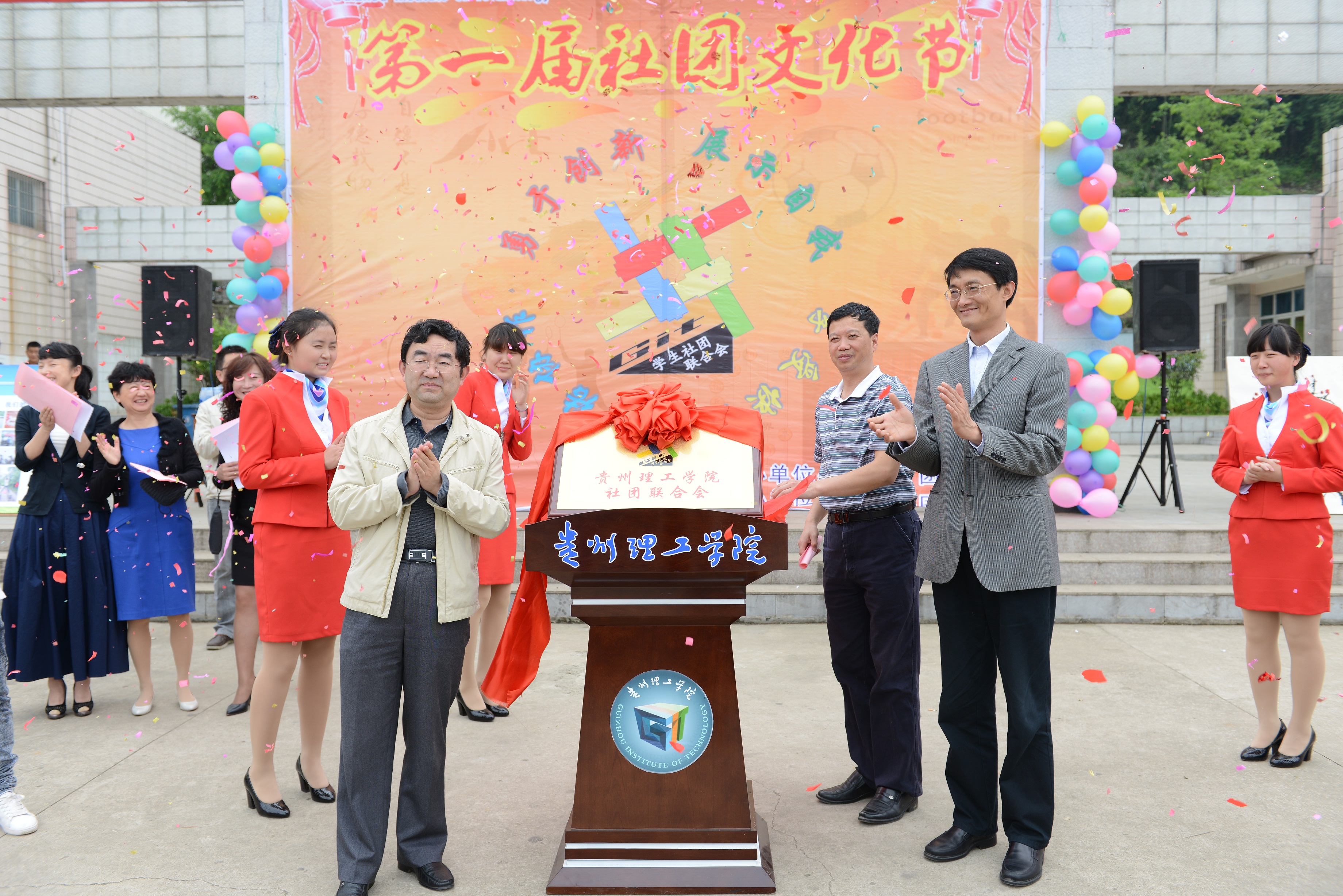 5月12日,本着“团结协作 勇于创新  展示自我 享受快乐”主旋律,校党委书记曾羽、副校长梁杰、校党委副书记宋广强及学校相关职能部门领导,各学院党总支副书记、团总支负责人,校级学生组织学生干部代表同贵州理工学院社团联合会各社团全体人员在逸夫学术交流中心广场齐聚一堂,隆重举行贵州理工学院社团联合会揭牌仪式暨第一届社团文化节开幕式。