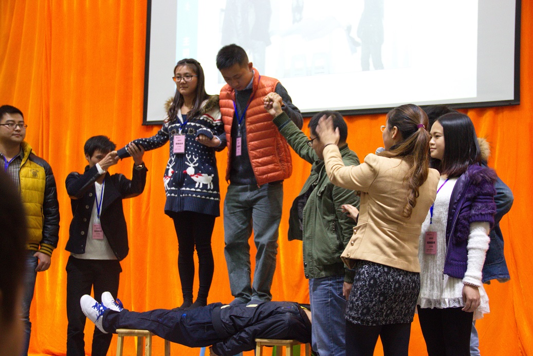 周振华老师以提问的方式引出了今天的讲座,从什么是催眠、测试你容易被催眠吗、催眠的用途几个方面诠释了催眠。周老师在现场不仅表演了催眠秀―催眠钢板,还让在场的同学们亲自体验被催眠的状态。