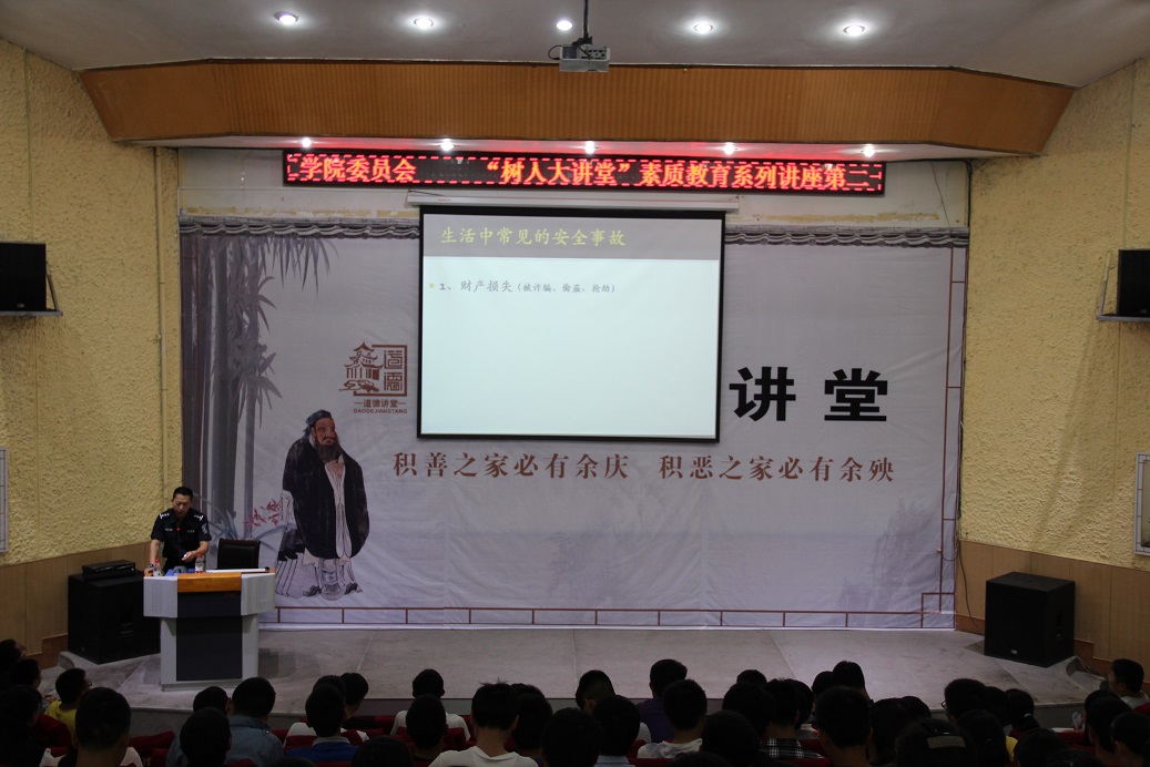 近期,大学生意外伤害事故频发,引起社会的关注。为提高同学防范意识,掌握应对措施,减少意外伤害事件的发生及其造成的损害,维持学校正常教学秩序,校团委组织开展此次针对大学生安全防卫的讲座。