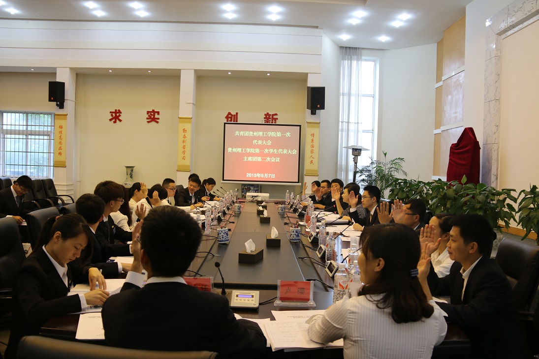 (本网讯 曾浩 孙恒)6月7日8:00,共青团贵州理工学院第一次代表大会、贵州理工学院第一次学生代表大会主席团第二次会议在喀斯特会议厅召开。金敏同志主持会议,主席团全体成员参加会议。