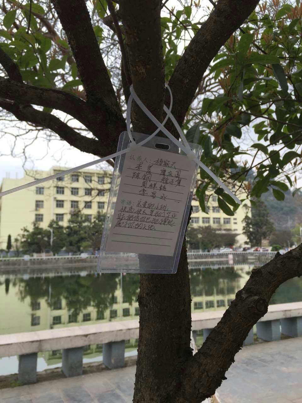 活动中,同学们为树木除草、松土、浇水,并开展了树木认养活动。我校200余名同学认养了40余棵树木,认养后,同学们将定期对树木进行浇水、除草等。