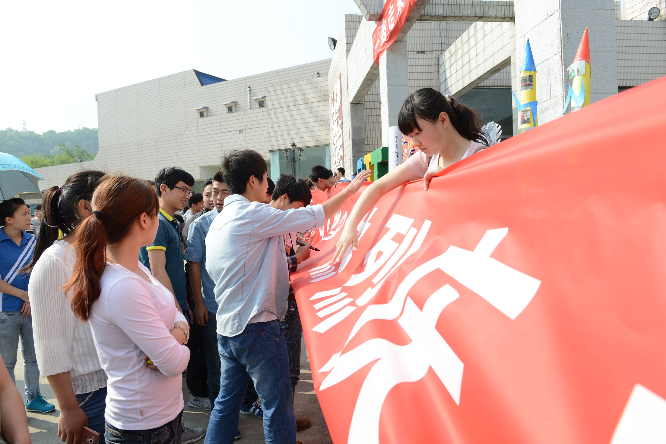 一场以“一路走来,青春有你”为主题的庆祝活动在贵州理工学院逸夫广场隆重举行,各个学院的学生亲手制作了具有专业特色的作品作为对学校成立一周年的献礼。