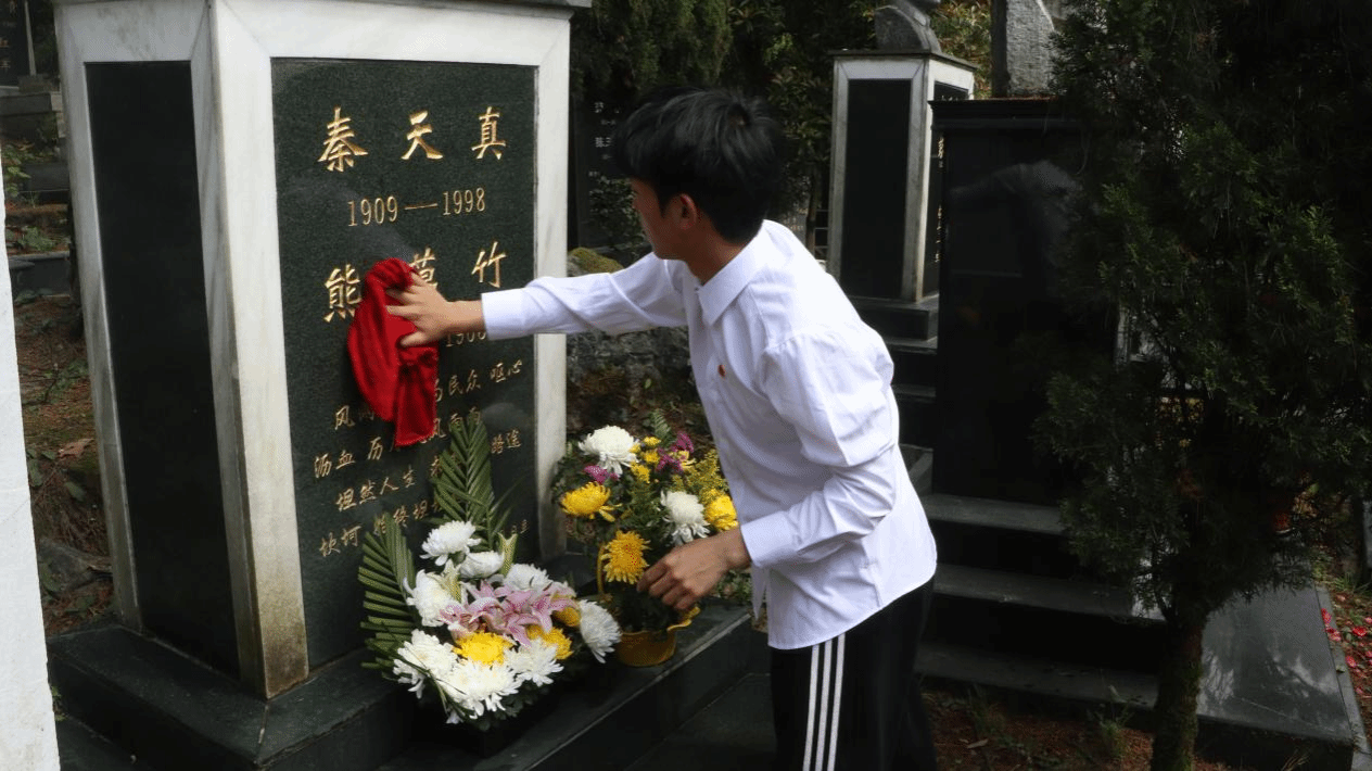 最后,同学们认真擦拭烈士墓碑,并清扫陵园内的落叶与垃圾,以双手践行对英烈的崇敬与追思。大家在劳动中感悟先烈精神,用实际行动守护陵园的庄严与整洁。