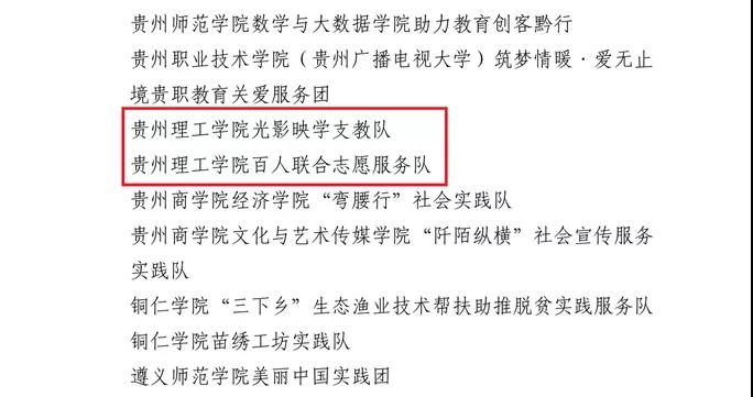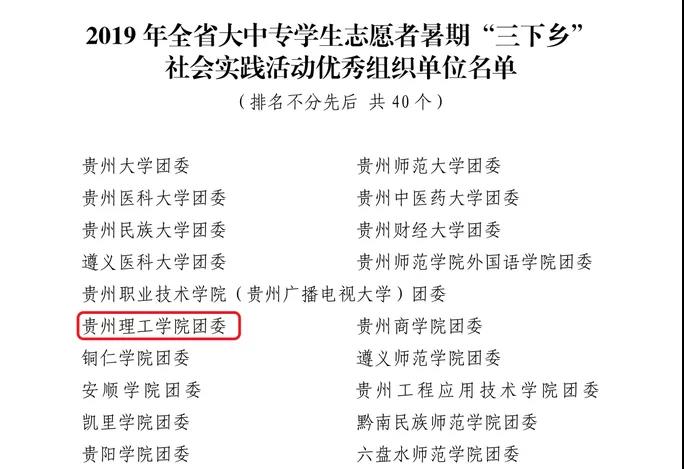 为推进“三下乡”社会实践活动持续深入开展,在实践育人中发挥更加突出的作用,决定对在2019年全省大中专学生志愿者暑期“三下乡”社会实践活动表现突出的团组织、团队和个人进行通报表扬。最终遴选出40个优秀单位、“青马 工程”实践服务队等83个优秀实践团队、395名优秀个人进行通报表扬。其中我们贵州理工学院积极参与的团组织、团队和个人也获得了多项荣誉,煤球君听到了也是与有荣焉。