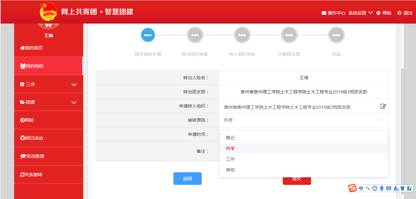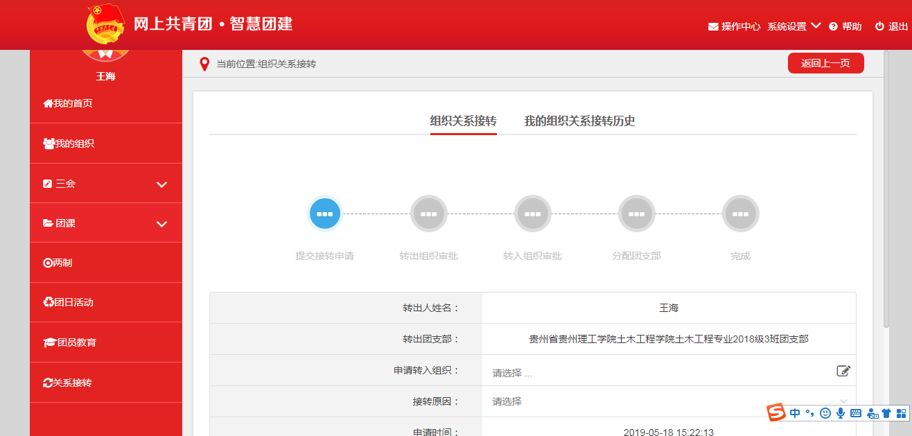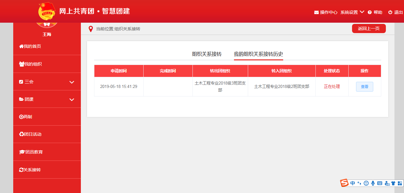 最后,跳转到“我的组织关系转接历史”即操作成功。